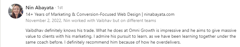 Hi, I’m Vaibhav and here’s what you get working with me:
